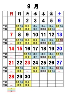 診療カレンダー9月