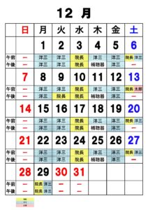 診療カレンダー12月最新