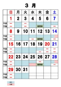 診療カレンダー3月